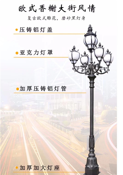 庭院灯有各种不同的类型,园林庭院灯按照风格可以分为欧式、中式、古典等;按照光源还可以分为太阳能庭院灯和LED庭院灯,不同的类型就会有不一样的效果。当然,庭院灯外形、尺寸也大有差异,消费者可以根据自己的喜好和庭院装修风格进行选择。
